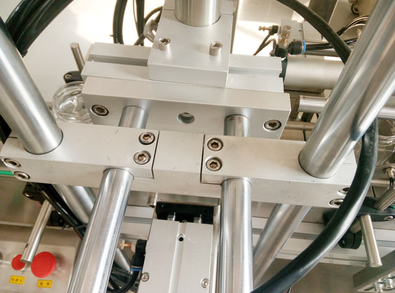 5、直線式進(jìn)瓶方式、不同瓶型尺寸調(diào)節(jié)簡單方便,不需要更換卡盤就可以實現(xiàn)