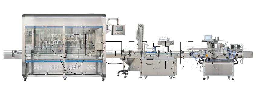 自動油類灌裝旋蓋貼標流水線客戶現(xiàn)場視頻