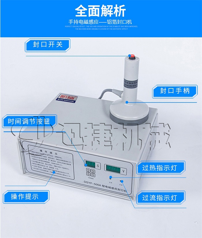 該該封口機(jī)為手持式鋁箔封口機(jī),是一種便攜式電磁感應(yīng)加熱封口設(shè)備,專為制藥、化工、農(nóng)藥、食品、化妝品、輕工行業(yè)對容器進(jìn)行鋁箔嚴(yán)密封口,封口材質(zhì)使用廣泛。