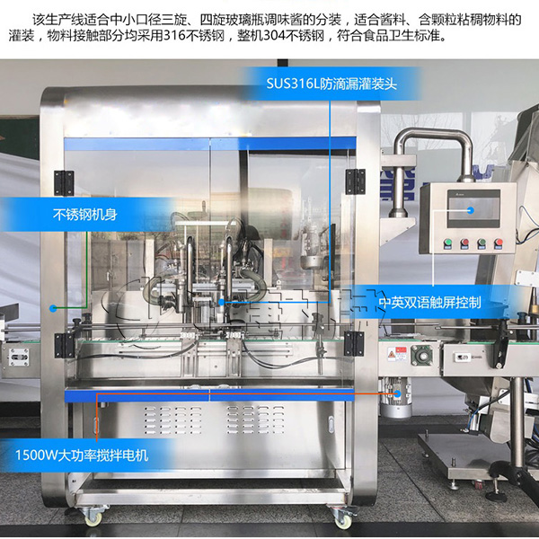6、牛肉醬灌裝機(jī)設(shè)備灌裝辣椒醬、香菇醬等各種有顆粒和勻質(zhì)濃醬料。