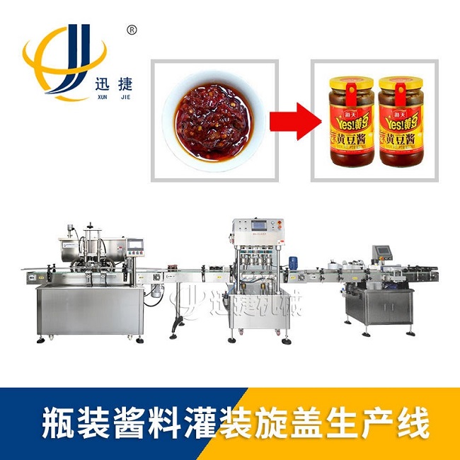 辣椒醬灌裝機(jī)采用活塞式灌裝原理,適用于調(diào)味品中帶顆粒并且濃度較大的辣椒醬、豆瓣醬、花生醬、香菇醬、果醬、牛油火鍋底料、紅油火鍋底料、蝦醬等較為粘稠醬類的灌裝。